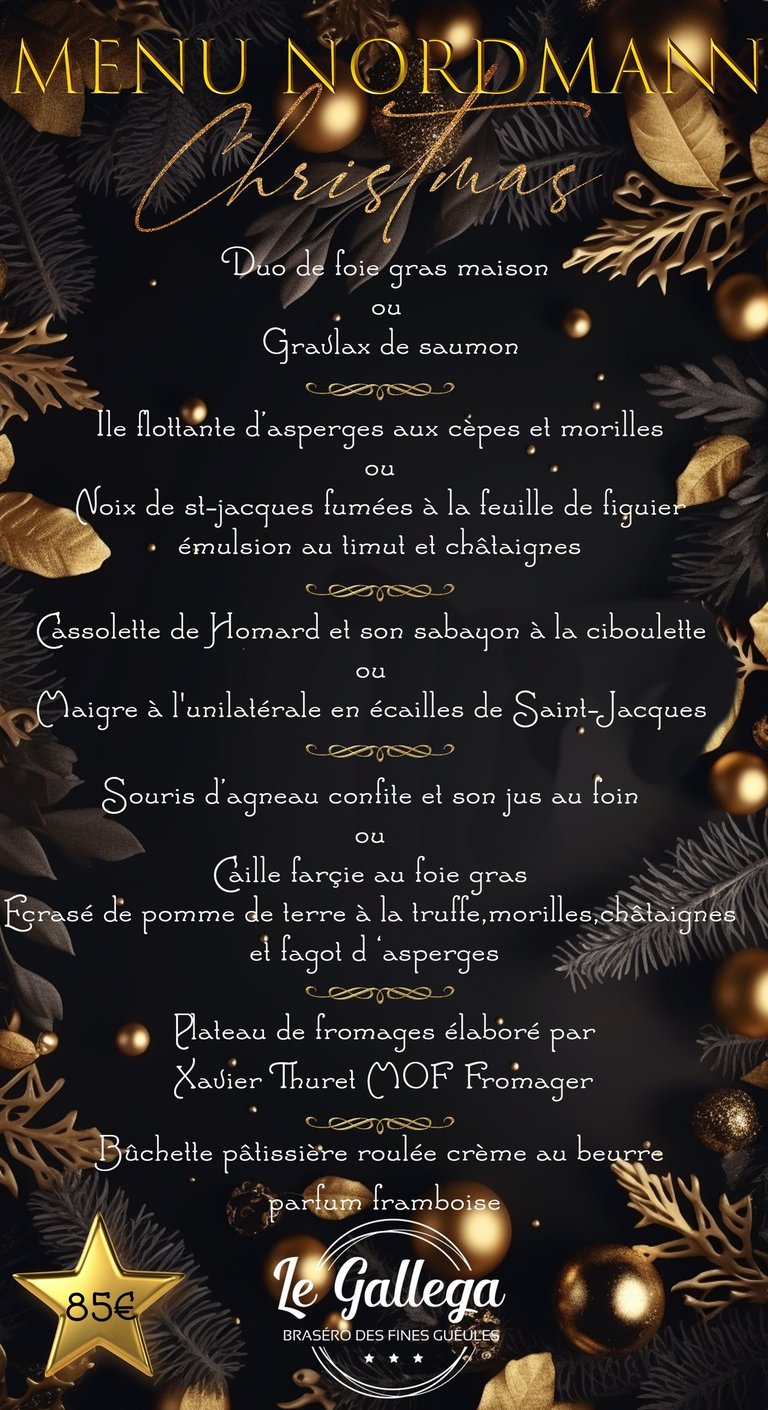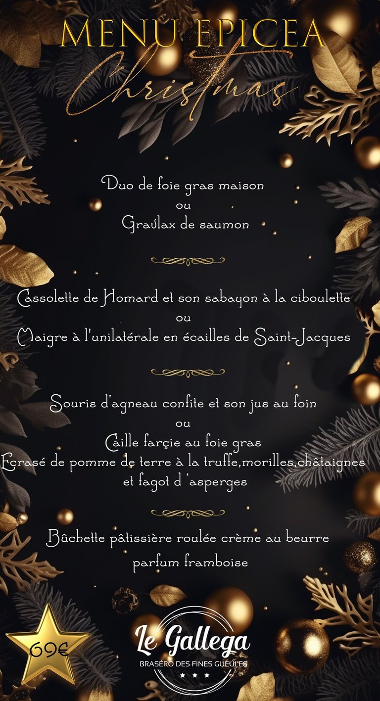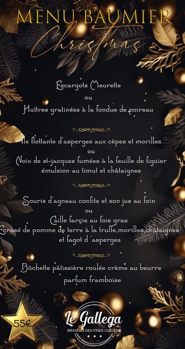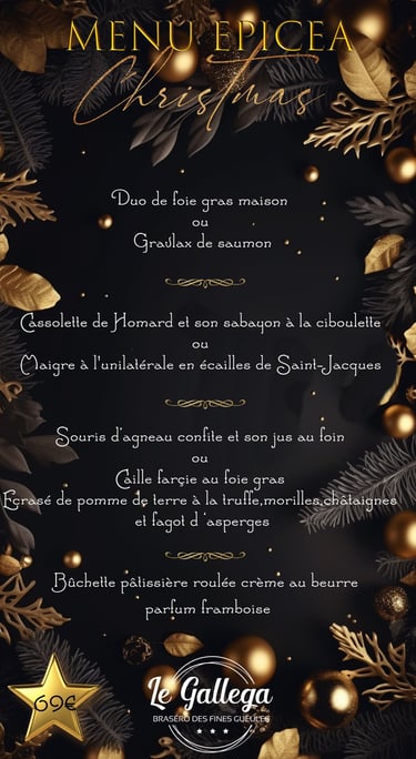 Voici les menus à emporter de cette année au restaurant LE GALLEGA BRASERO