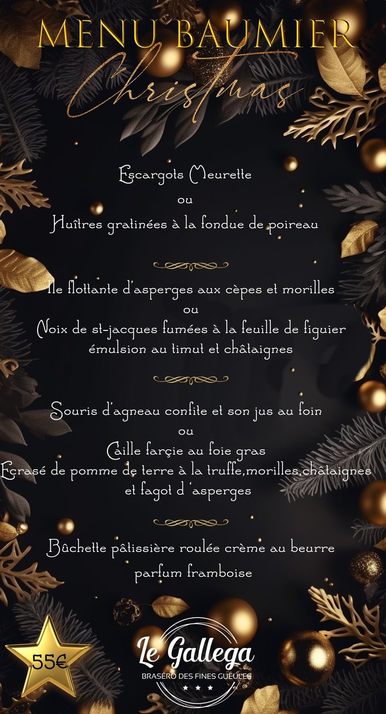 Les réservations pour Noël sont ouvertes jusqu’au 17 décembre 20H pour Noël et jusqu'au 24 Décembre 20H pour le réveillon de la st Sylvestre